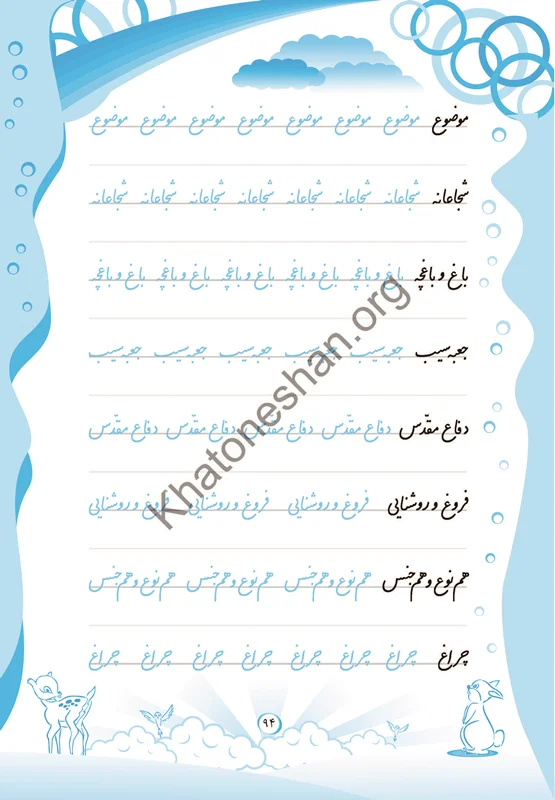 - صفحه اول: آموزش گامبهگام خوشنویسی.